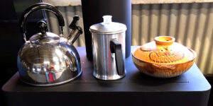 薪ストーブは暖房だけでなく調理も楽しめる多機能設計。