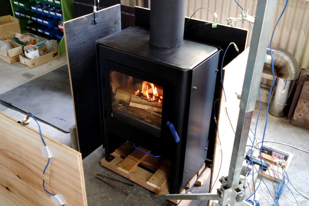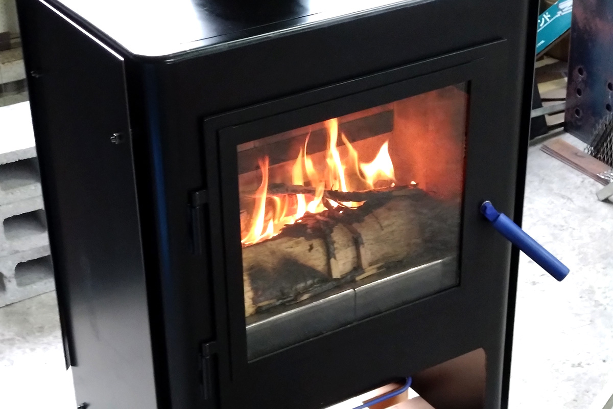 滋賀県内で設計から組立まで一貫製造される薪ストーブは、JIS規格の炭素鋼鋼板や耐熱800℃の日本製ガラスを使用し、高い耐久性と安全性を実現。