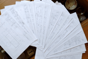 弊社は、国産メーカとして日本製薪ストーブを2025年に商品化しました。商品化された薪ストーブを一台完成するには、図面が約50枚、組立指示書・部品注文書が約10枚で構成されています。これら図面は、全て開発当初から今までの「失敗に伴う改善点、職人さんの声、お客様の声による改良点」を反映させ、日々進化しています。基本構造はほぼ変わりませんが、細かい部品・部位においては、商品化までにあらゆる改善・改良がありました。