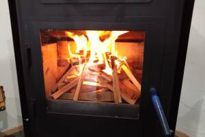 一方、開放型は、暖炉、いろりやかまどがあり、燃焼室が密閉されていないことで、開放型となります。燃焼用の空気は、室内の暖められた空気を前面開口部や全周から大量に取り入れて燃焼させます。一次空気のみで燃焼するため、不完全燃焼が発生しやすく、燃焼効率は30~40%程度といわれています。そのため、薪の消費量が多くなりがちです。